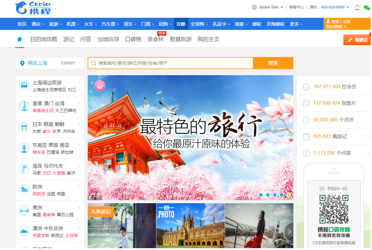 ”携程攻略”は、中国で最も情報の早いインターネット旅行交流サイトの一つです。