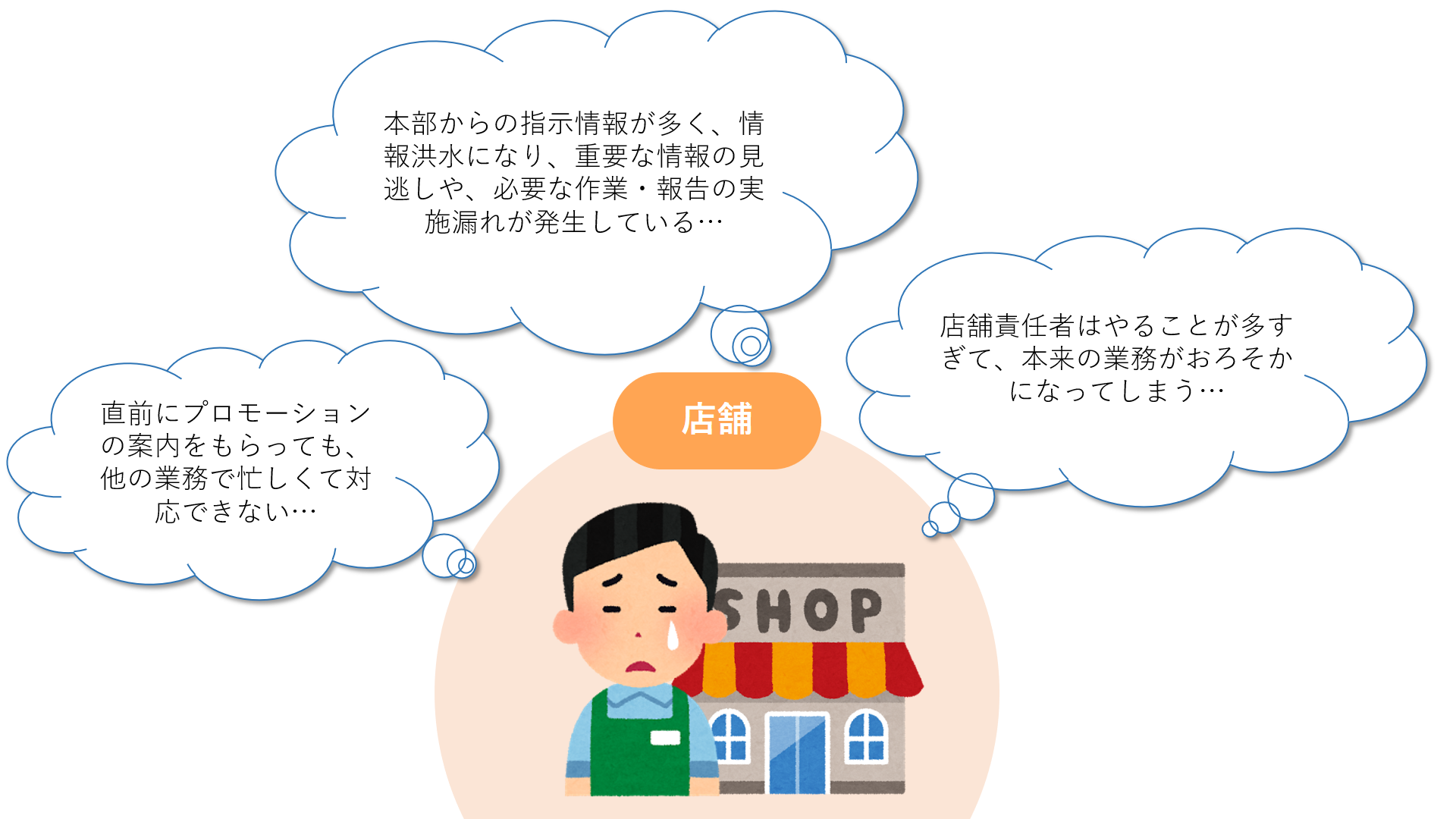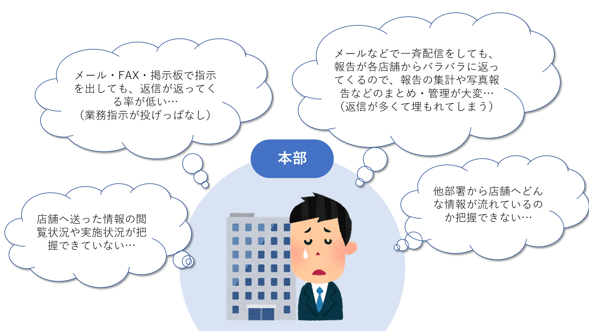 チェーンストアの皆様は、本部から各店舗へ毎週・毎日大量の指示が出しています。
