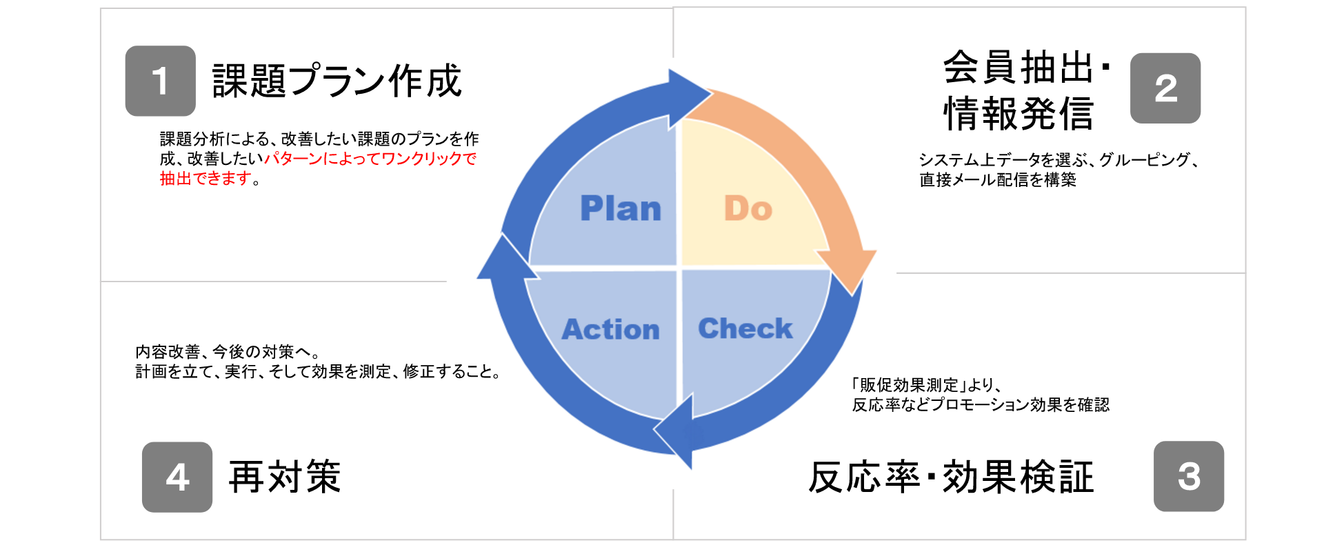各機能を連動し、施策の実行から結果を検証、分析結果の反映まで