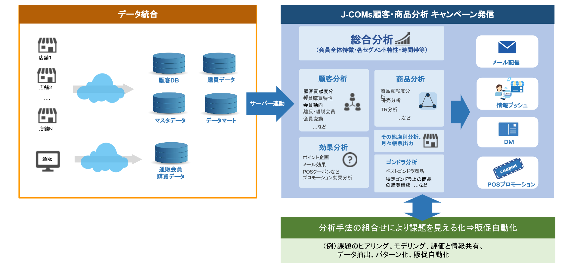 顧客データベースを集約⇒より高度な分析⇒プロモーションデータ配信まで