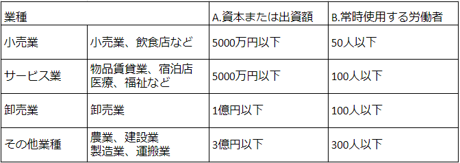 労働者災害保険の適用事業主かつ、下記表のAまたはBのいずれかに