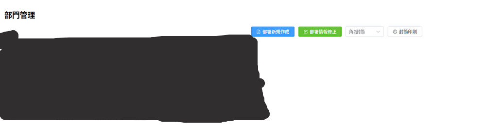 このページから部署新規作成や情報の修正を行うページに移動することができ、