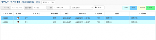 ふむふむ、貼られた画面を見ると打刻拠点も識別できるんですね。