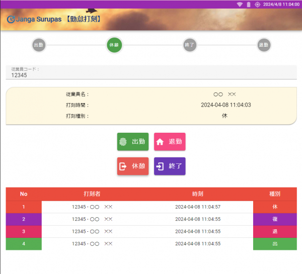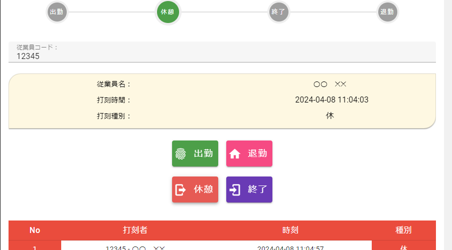 ↑改修では、打刻したボタンの色でログにも同じ色をつけ分かりやすくする工夫をしました。